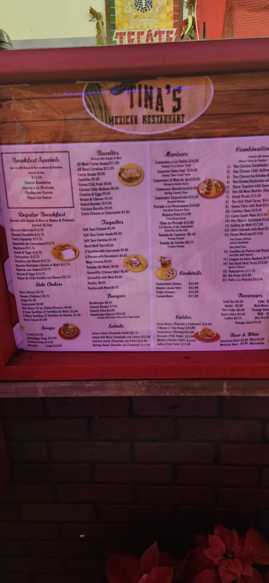 Welcome to Tina's, your premier destination for authentic Mexican cuisine in Pico Rivera. Nestled at 9129 Telegraph Rd, this charming eatery offers a vibrant assortment of dishes, each crafted with care and passion. The menu features mouthwatering options such as the classic Cheese Burger and an array of tantalizing Burritos. Noteworthy selections include the All Meat Carne Asada and the spicy Chorizo & Eggs, sure to satisfy any craving.